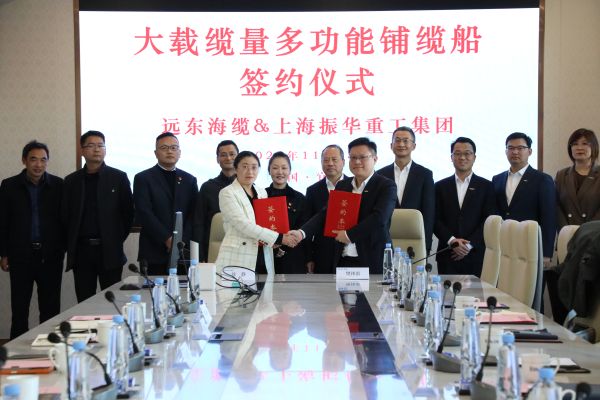 2025年11月18日,上海振華重工(集團(tuán))股份有限公司黨委常委、副總裁張健率隊(duì)來(lái)訪遠(yuǎn)東。遠(yuǎn)東控股集團(tuán)創(chuàng)始人、董事局主席蔣錫培,遠(yuǎn)東控股集團(tuán)黨委副書(shū)記、董事、電纜產(chǎn)業(yè)首席執(zhí)行官陳靜等領(lǐng)導(dǎo)熱情接待,雙方圍繞深遠(yuǎn)海開(kāi)發(fā)與國(guó)際海工市場(chǎng)布局展開(kāi)深度交流,并在江蘇宜興舉行大載纜量多功能鋪纜船EPC項(xiàng)目簽約儀式,標(biāo)志著兩大企業(yè)在海工裝備與能源配套領(lǐng)域的戰(zhàn)略合作邁入實(shí)質(zhì)性落地階段。遠(yuǎn)東控股集團(tuán)黨委委員、遠(yuǎn)東海纜總經(jīng)理徐靜代表遠(yuǎn)東簽約。