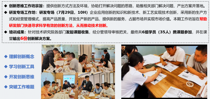 對(duì)于創(chuàng)新來(lái)說(shuō),方法就是新的世界,最重要的不是知識(shí),而是思路。企業(yè)應(yīng)用創(chuàng)新的知識(shí)和新技術(shù)、新工藝實(shí)現(xiàn)技術(shù)創(chuàng)新,采用新的生產(chǎn)方式和經(jīng)營(yíng)管理模式,提高產(chǎn)品質(zhì)量,開(kāi)發(fā)生產(chǎn)新的產(chǎn)品,提供新的服務(wù),占據(jù)市場(chǎng)并實(shí)現(xiàn)市場(chǎng)價(jià)值。為幫助核心部門(mén)快速尋求科學(xué)有效的創(chuàng)新方法,從而推動(dòng)技術(shù)創(chuàng)新,創(chuàng)新力學(xué)院根據(jù)不同主題開(kāi)展創(chuàng)新思維工作坊。